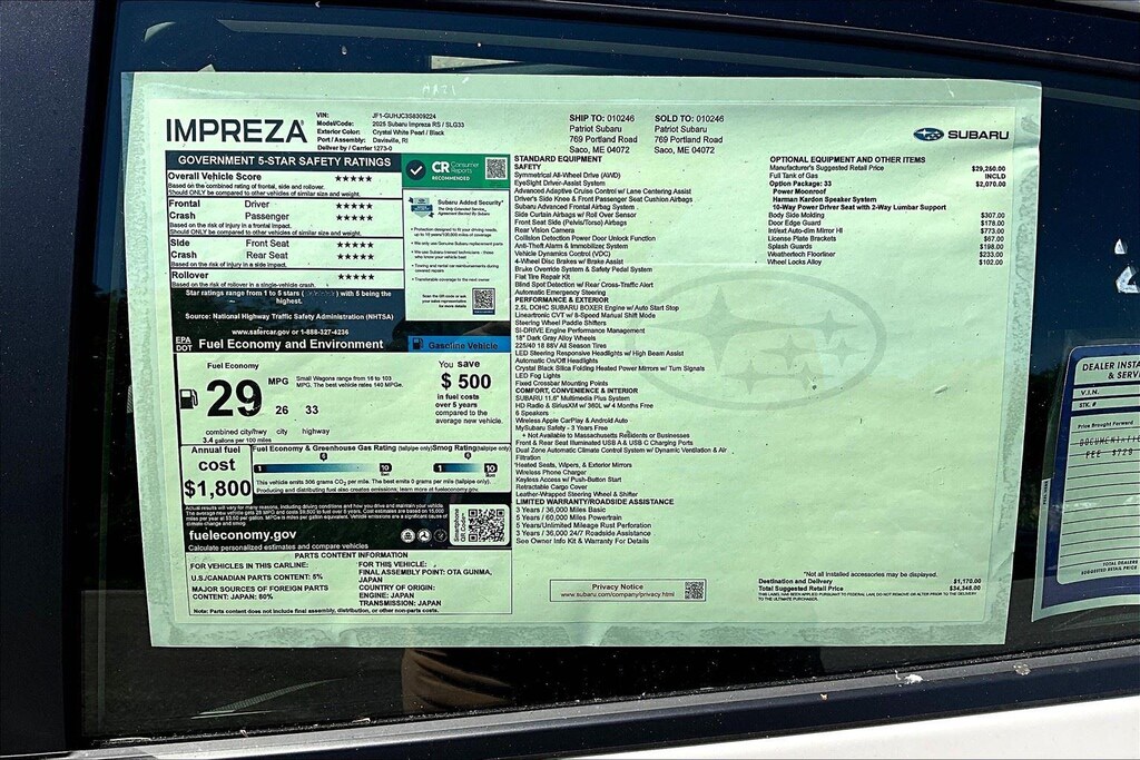 One of the unique benefits of purchasing at Patriot Subaru of Saco is our Exclusive Lifetime Warranty Program. It comes with every new car purchased, as well as many of the pre-owned vehicles that qualify. This vehicle DOES qualify for our Exclusive Lifetime warranty. It comes at no additional charge, and no hidden fees.