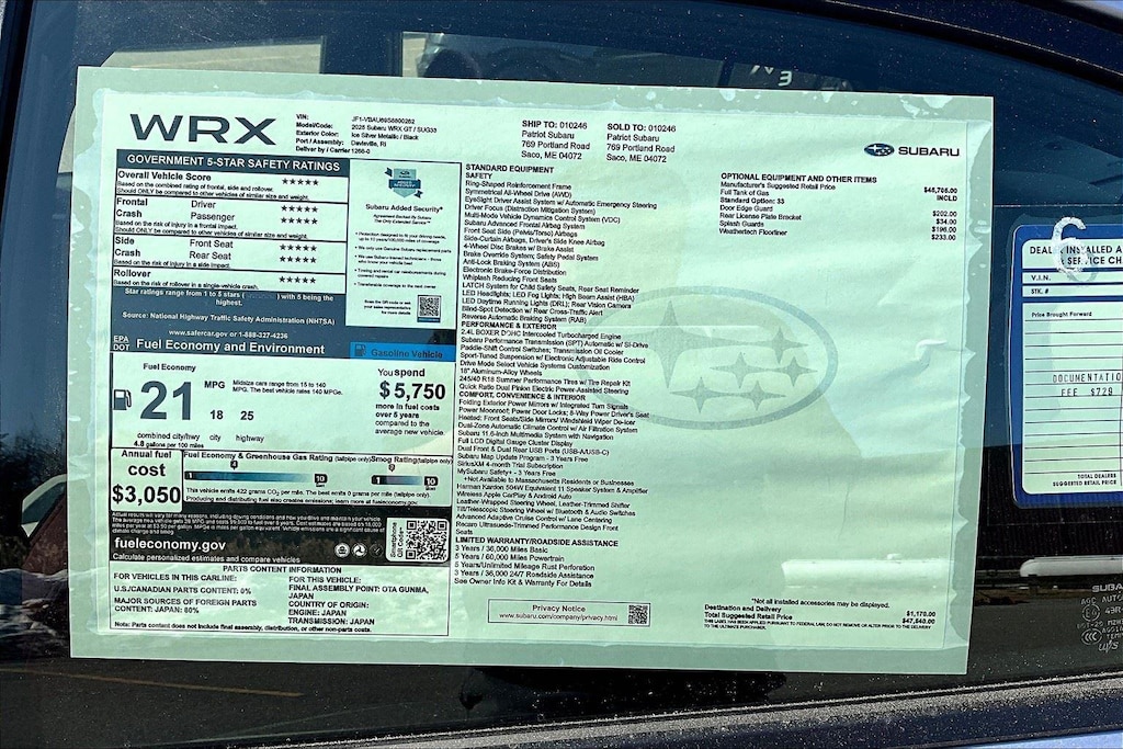 One of the unique benefits of purchasing at Patriot Subaru of Saco is our Exclusive Lifetime Warranty Program. It comes with every new car purchased, as well as many of the pre-owned vehicles that qualify. This vehicle DOES qualify for our Exclusive Lifetime warranty. It comes at no additional charge, and no hidden fees.