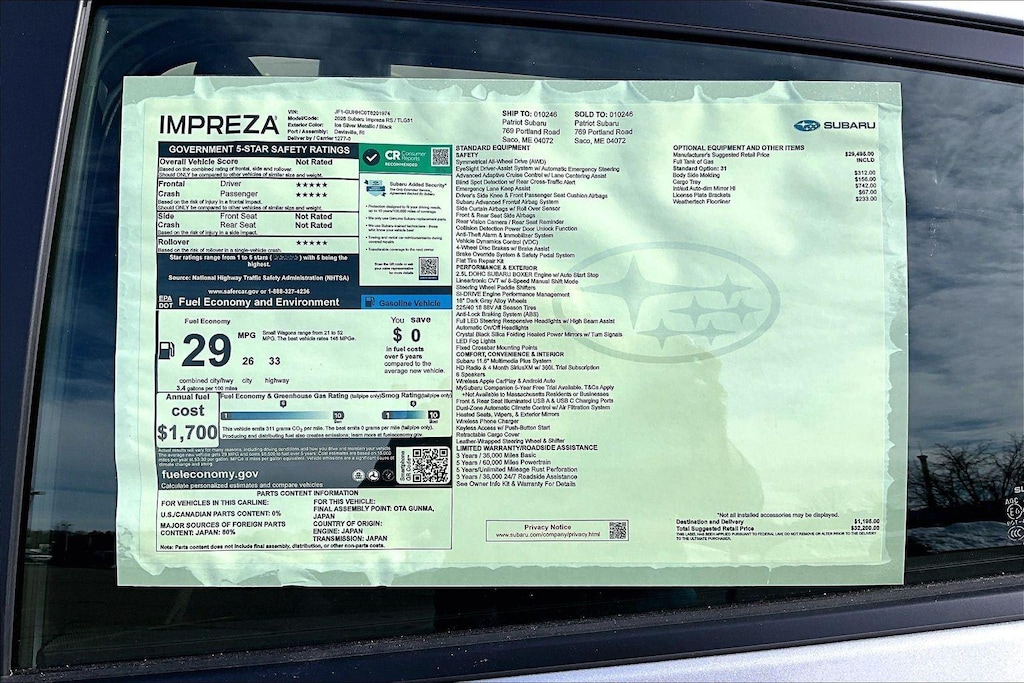 One of the unique benefits of purchasing at Patriot Subaru of Saco is our Exclusive Lifetime Warranty Program. It comes with every new car purchased, as well as many of the pre-owned vehicles that qualify. This vehicle DOES qualify for our Exclusive Lifetime warranty. It comes at no additional charge, and no hidden fees.