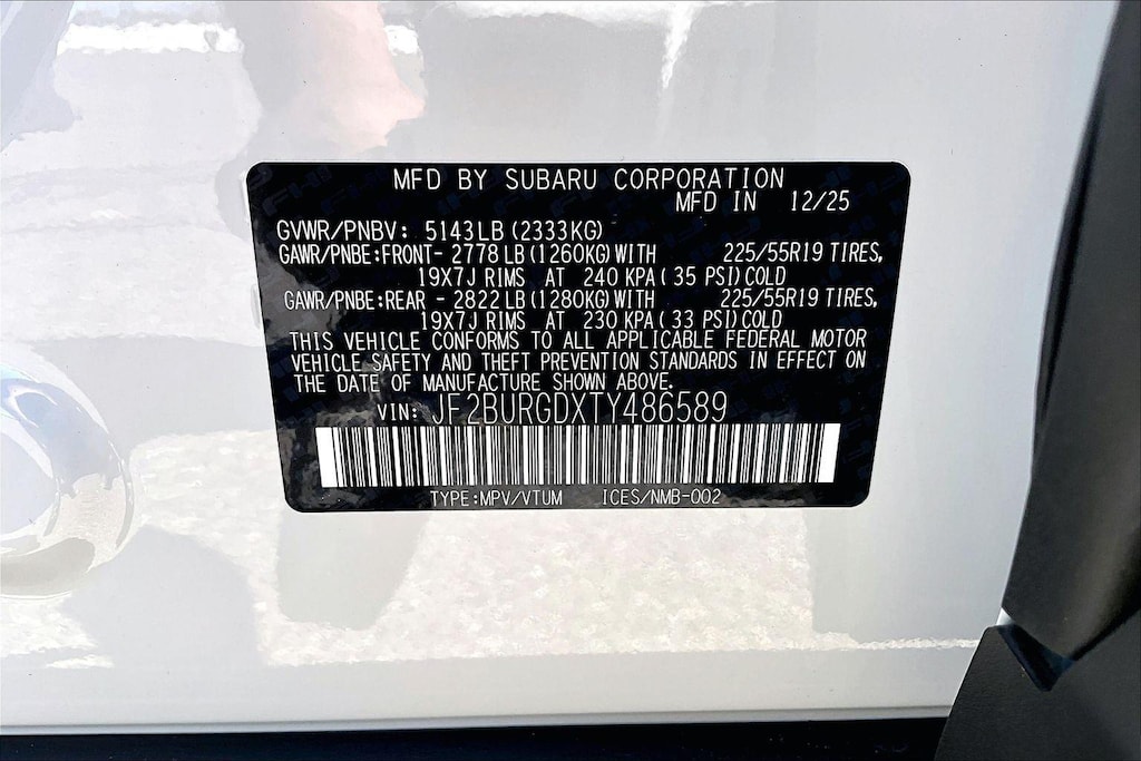 - Rear tires: 225/55HR19.0