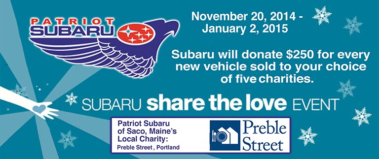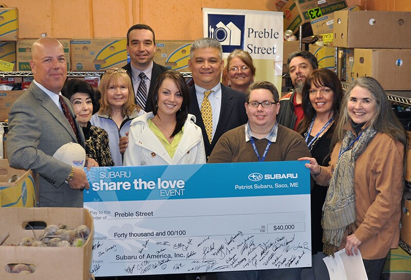 - One Local Hometown Charity selected by the dealer. For Patriot Subaru in Saco, Maine, that charity is Preble Street, of Portland.